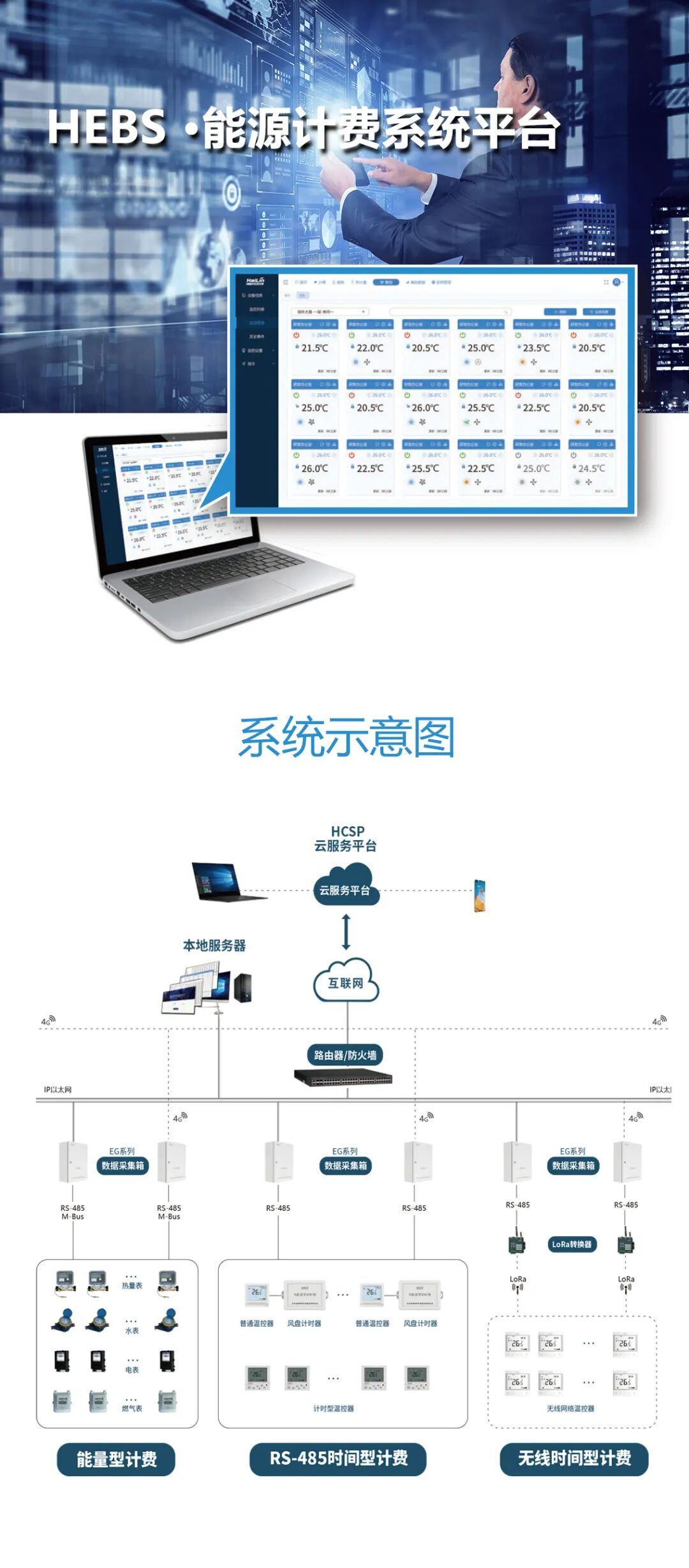 近几年来,随着人们的生活环境及消费观念的变化,中央空调已经成为许多建筑基本的配套设施。然而,在享受舒适环境的同时,我们不得不面临的一大难题是:建筑空调引起的碳排放问题日益严峻。我国建筑能源消耗约占国家能源消耗的20%-30%,中央空调系统能耗是建筑能源消耗的50%以上。响应国家“碳达峰碳中和”目标,如何达成舒适、节能与经济的均衡,是建筑楼宇行业追求的共同目标。节能从根本上来说,要从人们的消费观念着手,这也恰恰是中央空调计费系统的最大意义。我国目前大部分使用中央空调的建筑是按照面积分摊收费,这种方式虽然操作简单,但会导致“多用少用一个样,用与不用都得交”的“大锅饭”现象。这样不仅会造成浪费,也容易引起物业与业主之间的矛盾。科学的计费方式是推动用户提升节能意识的一个重要保障。海林自控深耕行业22年,始终秉承着"专注于智慧楼宇科技,让每一个建筑舒适健康和节能"的使命。打造绿色节能建筑,推进既有建筑的节能改造,是海林自控一直专注的事业。基于多年以来在暖通自控及能源管理等领域积累的丰富经验,海林自控推出HEBS ·能源计费系统平台,以方便管理、计量准确、智能安全、使用寿命长、施工简单投资少等特点,受到行业的很大关注。