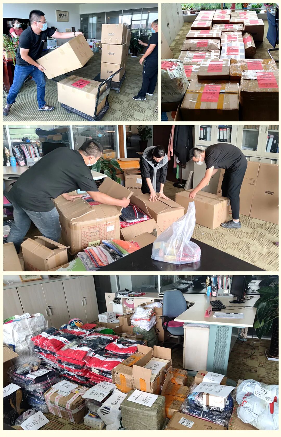 他们精心挑选对孩子们学习和生活有帮助的物品,服装、书籍、体育用品、书包及大量的作业本、笔、文具套盒等,共计7600余件(套)。这些物资满载着海林人的公益爱心发往了张寨海林学校。