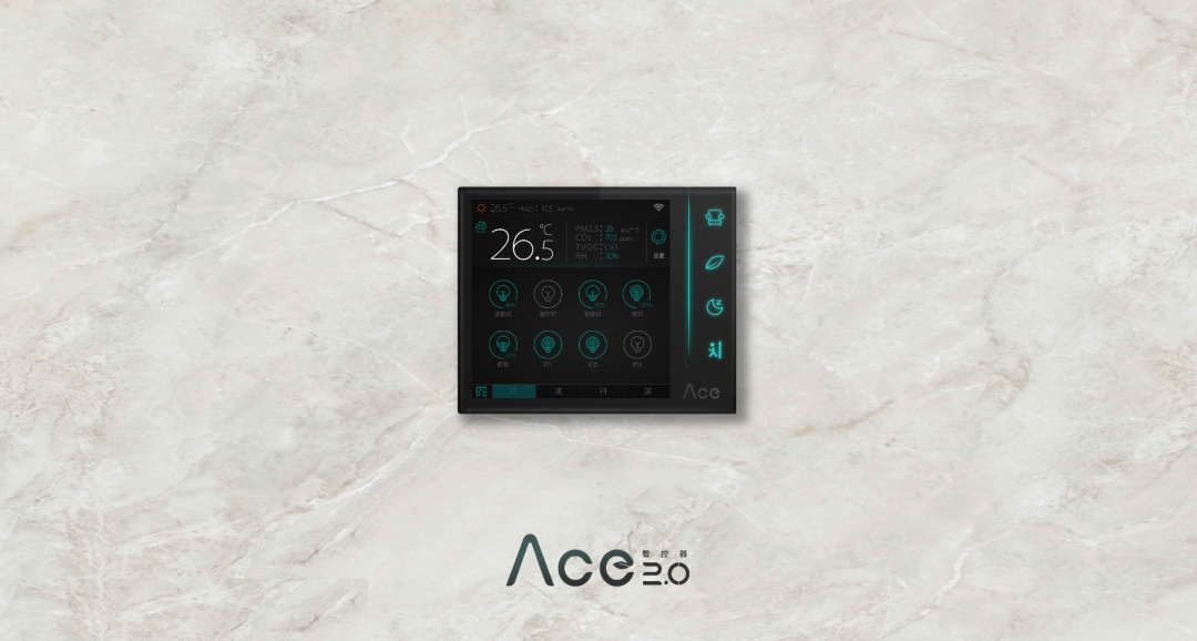Ace 2.0智能控制面板是一款室内智能控制面板,集空调控制、采暖控制、新风控制、灯光控制、窗帘控制、温湿度检测、空气质量监测、能耗监测等功能于一体,一个面板融合房间所有开关,可实现触摸、智能语音、人体感应、APP等多种交互模式;可集成多种智能模块,极大程度简化生活。