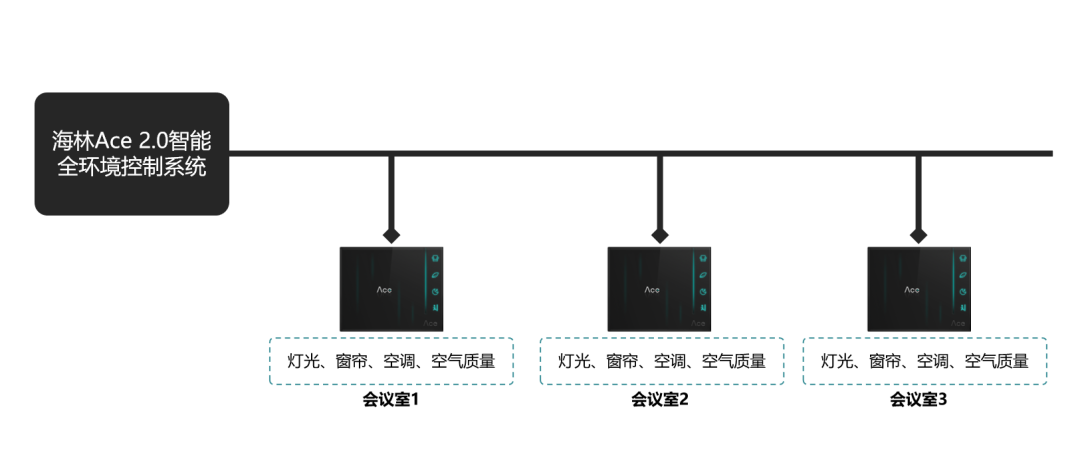 Ace 2.0智能面板做为每个区域的边缘网关,在面板内部通过控制逻辑可智能化联动灯光、窗帘、空调等设备,无需依赖上位机、上位机软件以及DDC等逻辑控制器。