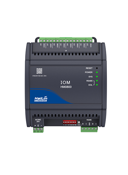 HM系列I/O模块用于拓展控制器的I/O点位,具备RS-485通 讯总线,支持Modbus RTU与BACnet MS/TP协议,推荐与 海林HD系列DDC搭配使用,也可兼容第三方控制器或平台。