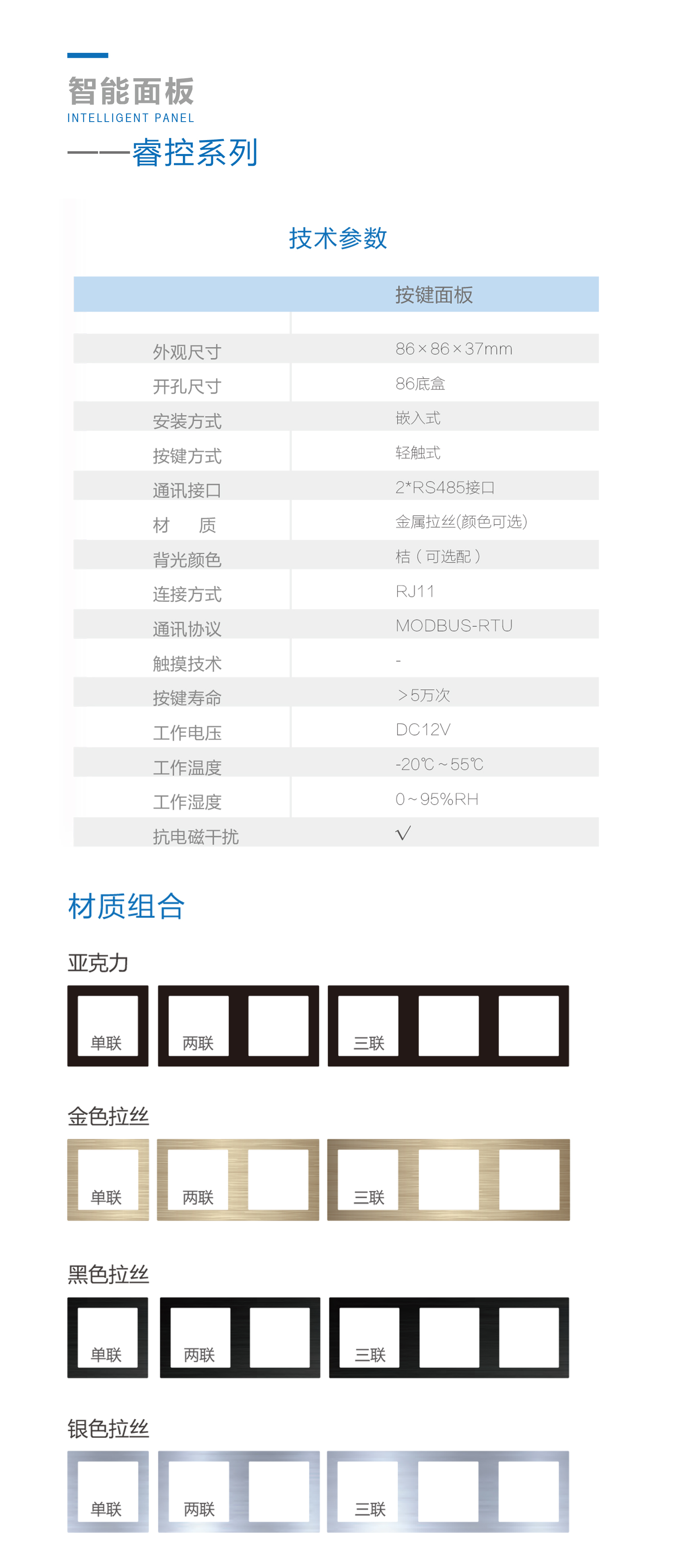 帘开关等功能。该系列面板为轻触式机械按键面板,按键背