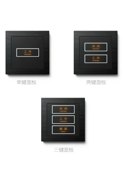 板(一键、两键、三键)、五孔插座,可控制一间客房内的