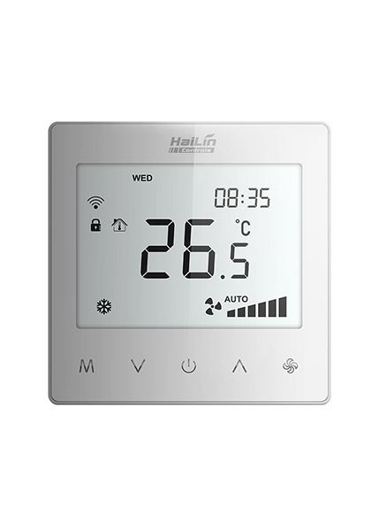 超薄机身设计,纤薄灵巧,精致雅观;大液晶屏,触摸按键,高透亚克力面板,外观简洁大方,适用于工业、商业及家庭居室的温度控制,控制普通交流三速风机盘管和阀门设备的开启与关闭。