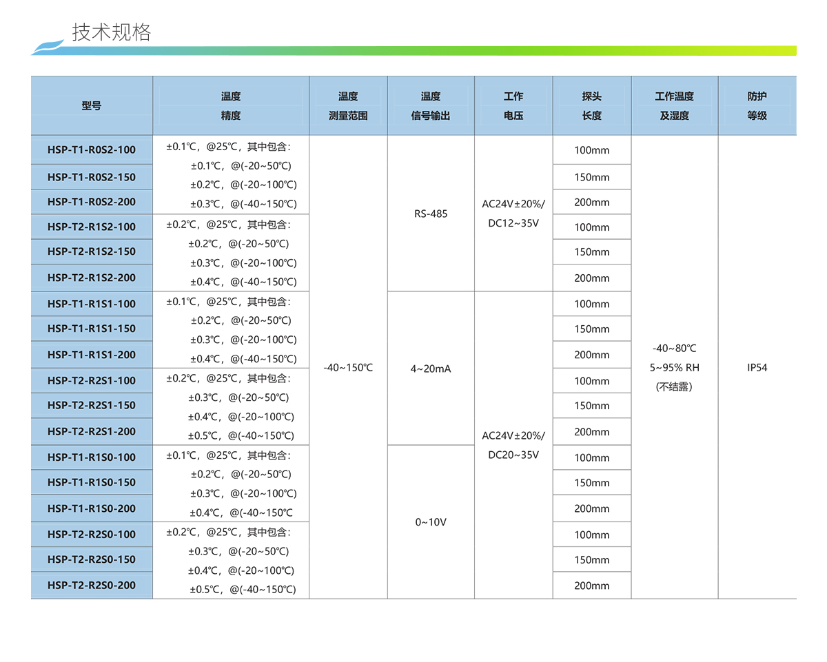 HSP系列高精度水管道温度传感器应用于楼宇自控系统中冷热水等管道内水温的测量。可提供多种测量范围和输出信号类型(电流、电压 和RS-485),适应各种控制系统的不同要求。 本产品具备抗浪涌和抗快速脉冲群防护功能,可有效防护供电系统大功率器件的启停,线路故障,变频设备的运行等造成的损坏。