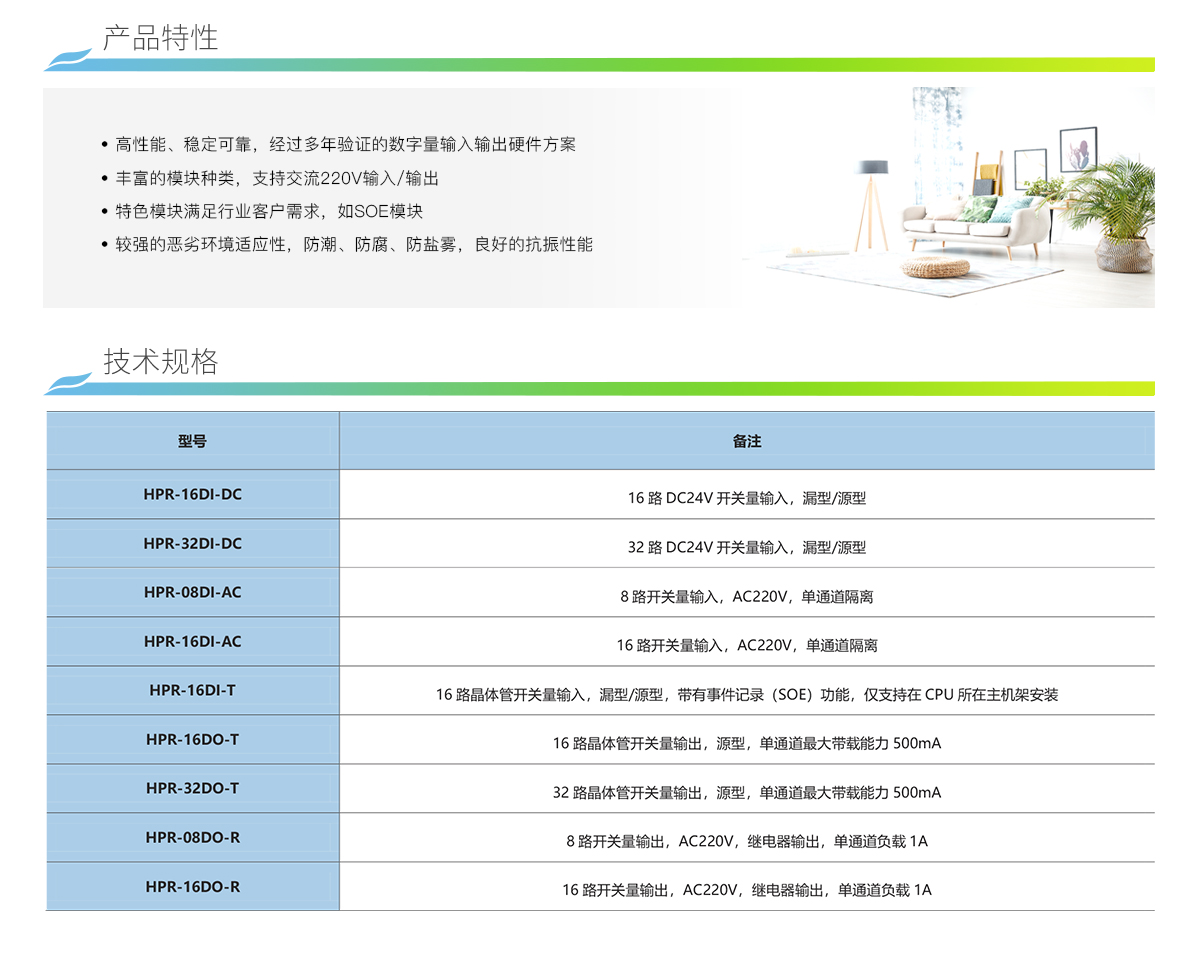 高性能、稳定可靠,经过多年验证的数字量输入输出硬件方案 ; 丰富的模块种类,支持交流220V输入/输出